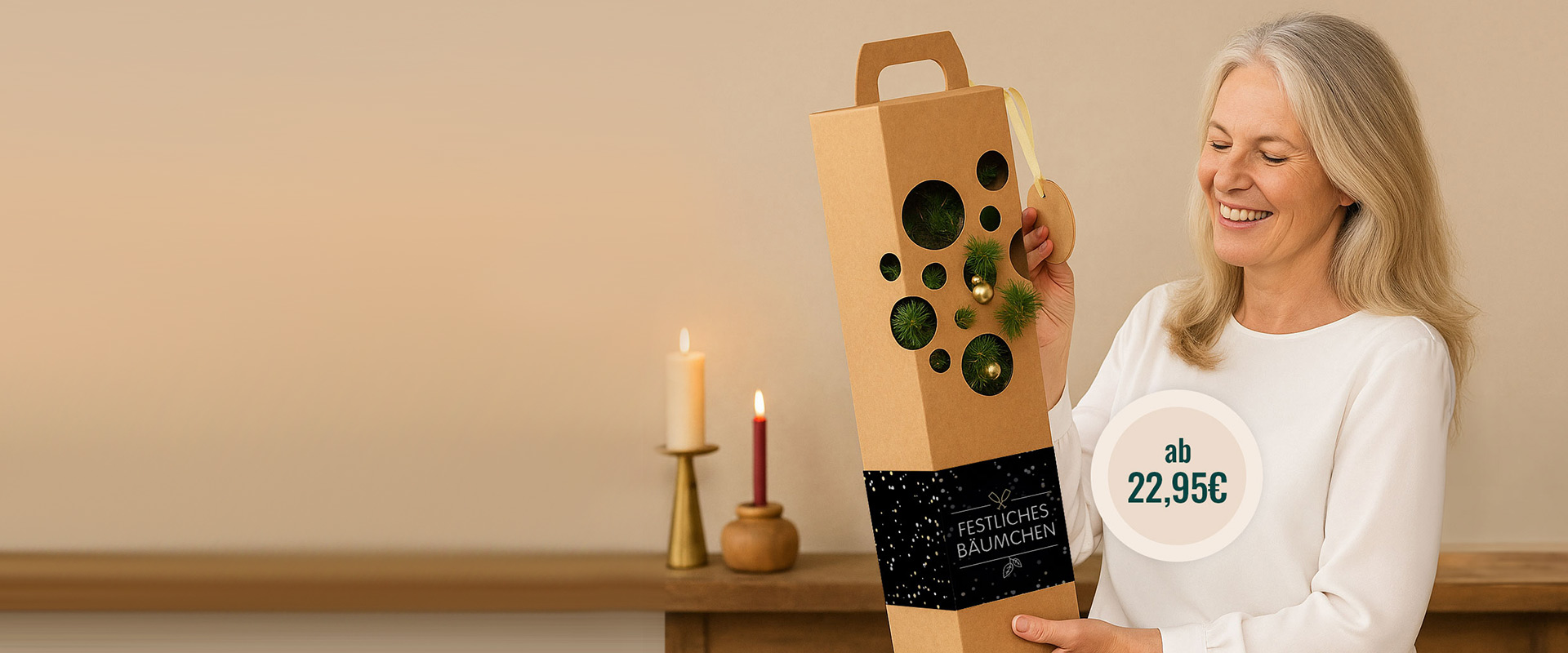 Zusätzlich zum Bäumchen können Sie ein kleines Geschenk wie eine Flasche Olivenöl, Schokolade oder einen USB-Stick beilegen. Ob Sie ein einzelnes Bäumchen geschäftlich bestellen oder eine größere Menge benötigen – wir kümmern uns darum.